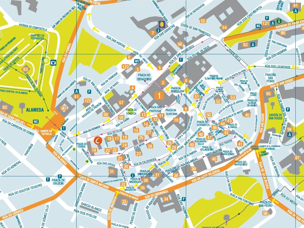 Web Plano Foto satélite Pronóstico del tiempo Mapa de Apple OpenStreetMap Mapa de Google Esri map MapBox Mapa de Yandex Etiquetas de temperatura Etiquetas de mapa. Web Calle Compostela se puede encontrar dentro del mapa de A Coruna. Web En una reciente visita a la sacristía de la Catedral tomamos una hoja informativa sobre la planta y capillas así como un escueto plano del centro de la ciudad.
